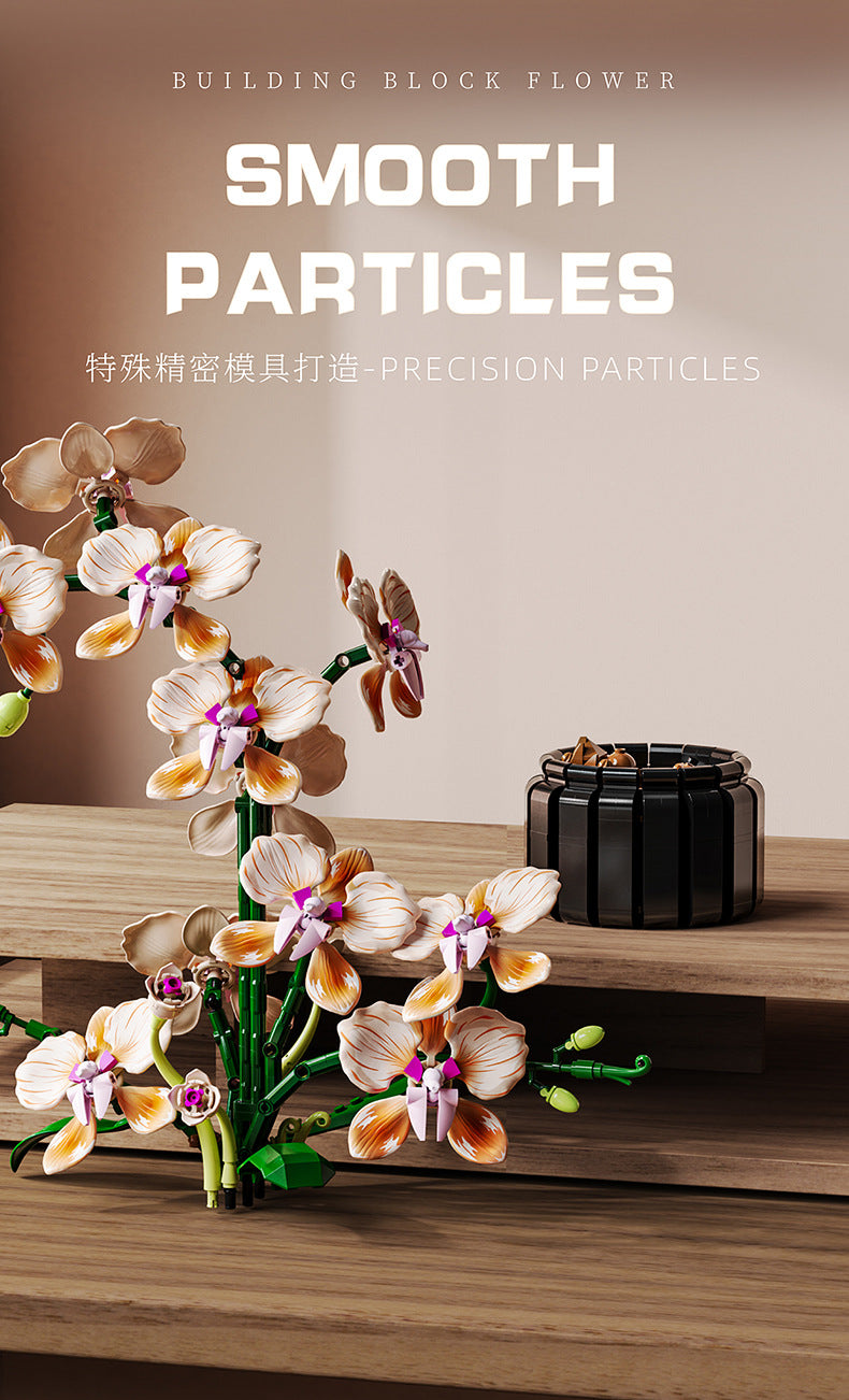 美しい蘭の花をブロックで再現した組み立て式盆栽モデルです。家庭やオフィスのインテリアとして、永遠に枯れない花を楽しめます。